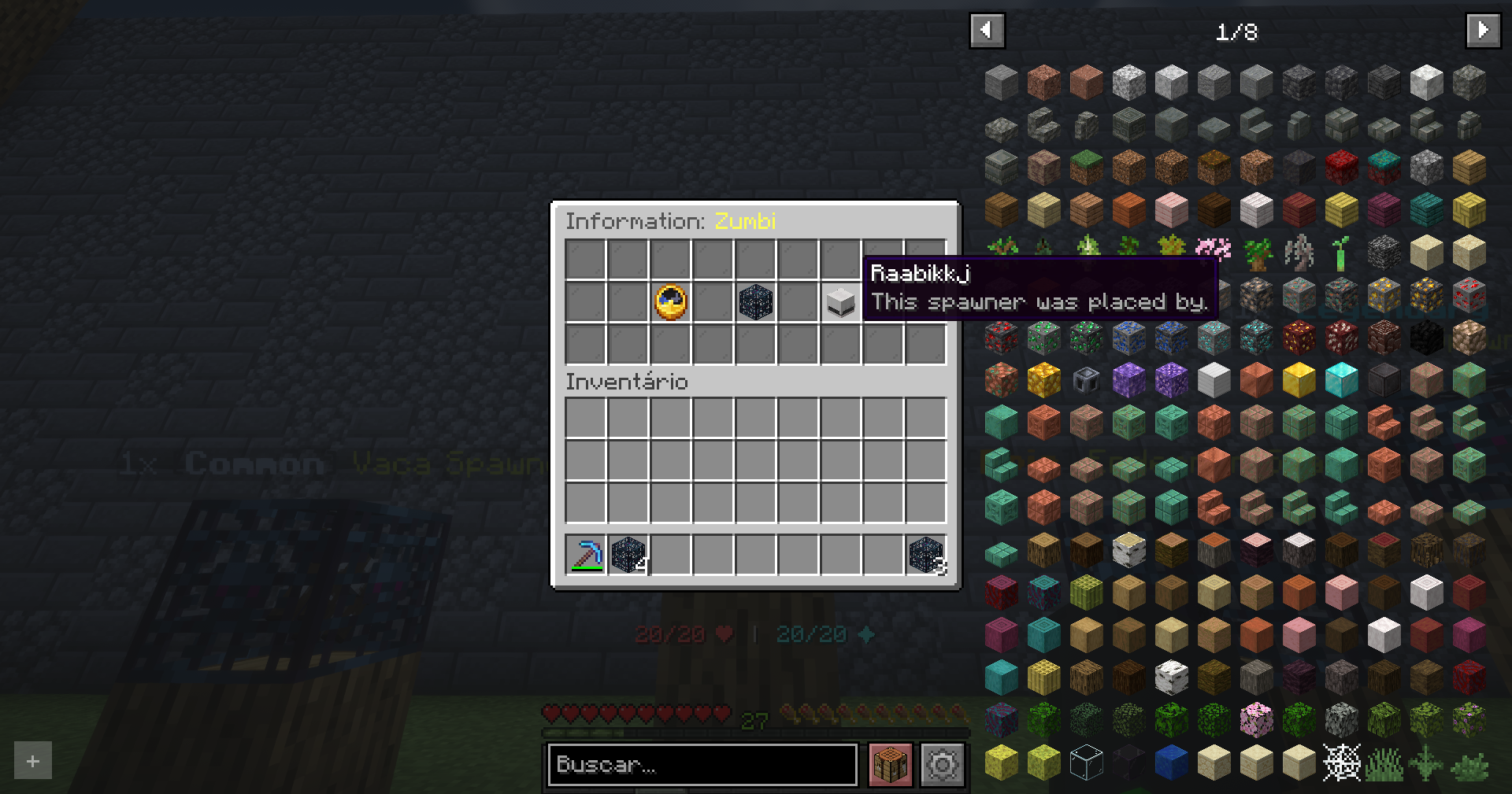 - Slot 15 (direita): cabeça do jogador que colocou o spawner (owner), se disponível.